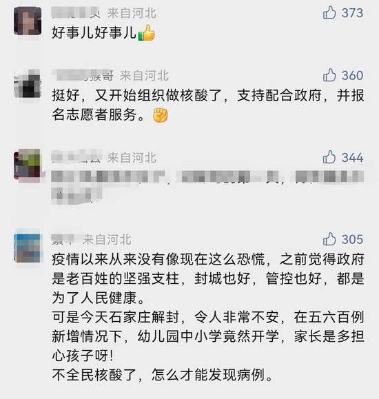 恢复部分核酸检测采样点后,石家庄市的居民如何反馈?在一则微信公众号文章的评论区有不少居民留言: