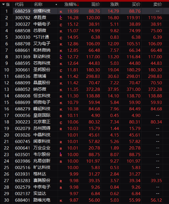 原标题 石家庄卖断货!刚刚,600亿巨头涨停!巴菲特出手,7万亿赛道多股涨停!“牛市旗手”也启动了 来源 中国基金报 文 江右 股市又又又嗨了,牛市旗手都动起来了! 近期,A股持续躁动,今天上午“牛市旗手”券商股突然狂拉,财达证券(8.530, 0.78, 10.06%)、湘财股份(8.870, 0.81, 10.05%)更是涨停。有媒体报道以岭药业(37.760, 3.43, 9.99%)总部所在地石家庄部分药店连花清瘟胶囊出现断货情况,以岭药业今天上午又涨停。芯片股是今天最靓的仔,巴菲特出手抄底台积电,7万多亿市值大跌芯片板块狂掀涨停潮。 上午收盘,上证指数张1.27%,深证成指涨1.56%,创业板指数(2431.733, 56.53, 2.38%)涨1.64%,科创50指数涨2.54%,成交额 ![]() 北上资金上午一路扫货,净买入58亿元。 ![]() 媒体报道石家庄出现“卖断货” 莲花清瘟胶股连续涨停 因为疫情防控政策的变化,石家庄市近期受到全国关注。近日,有媒体报道石家庄莲花清瘟胶囊出现卖断货的情况,总部位于石家庄、生产莲花清瘟胶囊的以岭药业今天上午又涨停,昨天已经涨停。上午收盘总市值631亿元。 ![]() 媒体报道,近日以岭药业总部所在地石家庄部分药店连花清瘟胶囊出现断货情况。财联社记者走访当地连锁药店,有工作人员表示“现在是有多少卖多少”,有药房甚至表示已经断货。 牛市旗手躁动 两券商股涨停 市场近期明显回温,券商股也躁动起来。今天上午,券商股突然发飙,板块一度狂拉近5%。 ![]() 财达证券、湘财股份涨停,光大证券(16.960, 1.54, 9.99%)(维权)涨超9%,国联证券(11.260, 0.81, 7.75%)、广发证券(16.050, 0.80, 5.25%)等纷纷大涨。 ![]() 巴菲特出手! 7万亿赛道掀起涨停潮 芯片股上午一路暴拉,板块涨幅超4%,半导体板块更是暴涨超6%。7万多亿市值的芯片板块掀起涨停潮,创耀科技(88.760, 14.79, 19.99%)20%涨停,卓胜微(119.130, 15.93, 15.44%)大涨16%,中颖电子(38.760, 4.96, 14.67%)、芯朋微(73.610, 8.44, 12.95%)等纷纷大涨,12只股涨停。 ![]() 千亿市值的韦尔股份(88.750, 8.07, 10.00%)也涨停。 ![]() 最新数据显示,巴菲特旗下的伯克希尔在三季度建仓买入台积电,持仓市值达41亿美元。此外,伯克希尔三季度还建仓建材制造商Louisiana-Pacific及杰弗瑞(JEF)。 而在近期,美国费城半导体指数已进入技术性牛市,相关美股半导体股票都筑底大涨;对于A股消费类半导体公司来说,2022年四季度开始是库存高位拐点。