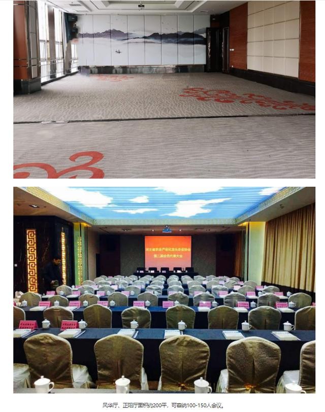 河北师范大学继续教育学院网站有对该酒店的相关介绍," 风华厅、正阳厅面积约 200 平,可容纳 100-150 人会议。"