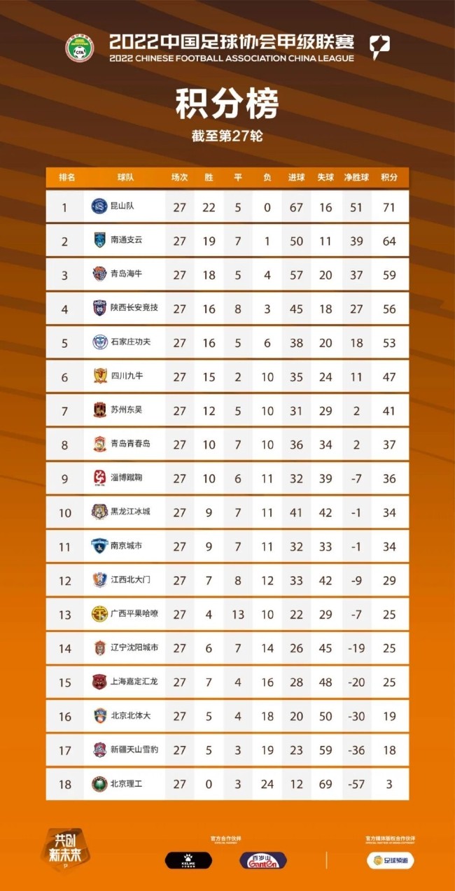 ![]() 北京时间11月5日,2022赛季中甲联赛结束了第27轮较量。在第三比赛日的争夺中,南通支云队以一球小负陕西长安竞技队,不败金身被打破。青岛海牛队以5比1大胜新疆天山雪豹队后,继续稳坐积分榜第三位。以下为比赛综述。 石家庄功夫2比0上海嘉定汇龙 上半场第29分钟,石家庄功夫队10号安屹斐门前补射先拔头筹。第33分钟,石家庄功夫队16号张浩再次补射再下一城。下半场两队易边再战,石家庄功夫队替补登场的32号亚历山德罗尝试倒勾射门打偏。全场比赛结束,石家庄功夫队经历了两轮不胜后以2比0战胜上海嘉定汇龙队。 南通支云0比1陕西长安竞技 上半场第20分钟,陕西长安竞技队8号邓彪起脚远射,皮球击中横梁弹出。下半场第54分钟,40号奥格布在五人夹防的情况下分出皮球,26号马俊亮小禁区前推射打破僵局。随后,南通支云队11号科雷亚错失扳平良机。最终,南通支云队以0比1不敌陕西长安竞技队。 陕西长安竞技队收获六连胜的同时终结了南通支云队的赛季不败,此役过后南通支云队与榜首的昆山队再次拉大了差距。 青岛海牛5比1新疆天山雪豹 上半场第13分钟,谢文能在底线附近得球后传中,10号奥努埃布头槌破门得分,青岛海牛队先拔头筹。第17分钟,姜宁接郑龙的传球后顺势横传中路,孙旭禁区外果断远射,皮球应声入网,青岛海牛队2比0领先新疆队。第21分钟,姜宁也轰出世界波,青岛海牛队三球领先对手。 第42分钟,谢文能送上助攻,易卜拉欣-凯恩倒地铲射破门得分。第44分钟,新疆天山雪豹队依靠佧米然的门前补射扳回一城。下半场第89分钟,青岛海牛替补登场的小将张桐获得单刀机会,他面对门将顾俊杰冷静推射锁定胜局。最终,青岛海牛队以5比1大胜新疆天山雪豹队。 附2022赛季中甲联赛积分榜(截至第27轮) ![]() (不死草) |