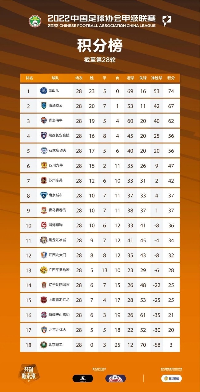 ![]() 北京时间11月9日,2022赛季中甲联赛结束了第28轮较量。随着西北狼陕西长安竞技队0比2不敌石家庄功夫队后,本赛季中甲联赛第一支冲超成功的球队也随之诞生,那便是至今保持不败的昆山队。 在今天下午进行的中甲联赛第28轮第三比赛日的争夺中,陕西长安竞技队以0比2负于石家庄功夫队。上半场补时阶段,石家庄功夫队张宸梁接汪嵩的助攻头球破门。下半场第55分钟,战赛男在右路突破后传中,外援莱昂纳多用脚后跟磕射破门。第65分钟,陕西长安竞技队获得点球机会,可惜坦布将球踢飞。最终,陕西长安竞技队0比2不敌石家庄功夫队,6连胜纪录被终结。 随着陕西长安竞技队失利,领头羊昆山队也成为了本赛季中甲联赛第一支冲超成功的球队。在本轮第一比赛日的较量中,昆山队凭借冯伯元的梅开二度以2比0击败四川九牛队继续稳坐榜首。 ![]() 本轮过后,昆山队以23胜5平0负积74分高居榜首,领先第四名积56分的陕西长安竞技队18分。南通支云队以20胜7平1负积67分紧随其后,青岛海牛队以19胜5平4负积62分暂列第三。 (不死草) |