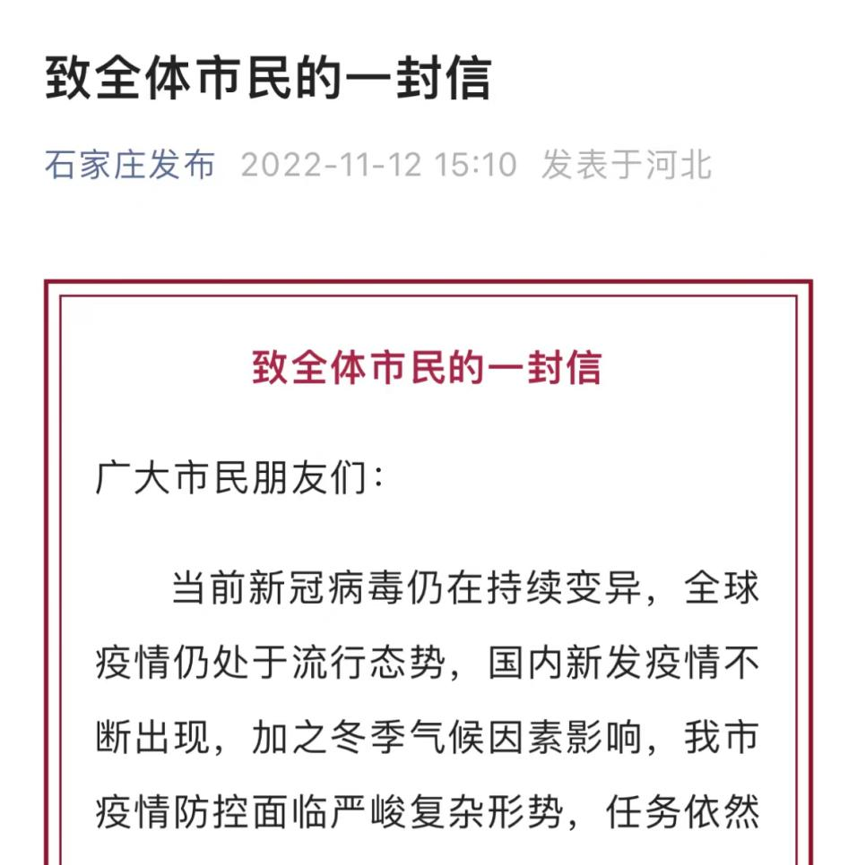 石家庄是在新冠疫情形势还十分严峻的情况下做出这一调整的。 石家庄是在新冠疫情形势还十分严峻的情况下做出这一调整的。11月13日,石家庄新增新冠确诊病例3例,新增无症状感染者541例。 ![]() “一封信”中特别提醒,优化调整防控措施不是放松防控,更不是放开、“躺平”。如遇一些地方和部门搞“一刀切”“层层加码”“一封了之”等任意延长封控时限、任意扩大封控范围、任意加码封控措施的,可以通过热线电话进行反映和监督,一定及时严肃查处、整改到位。 顶端新闻记者从石家庄疫情防控指挥部了解到,目前石家庄依旧会对重点区域包括酒店等查验核酸检测情况。而桥西区中山西路新百广场、长安区万达广场等多家商场的工作人员称,目前这些商场持绿码即可入内。 “医学界”查询发现,石家庄并不是唯一取消区域全员核酸检测的城市,安徽省合肥市及上海市等多地也已积极调整现行的防疫政策,宣布取消或暂不开展区域全员核酸检测。 “合肥发布”11月14日日凌晨发文《合肥进一步优化疫情防空服务,最新回复来了》,对于市民关注的核酸检测调整的问题,文中回答: 一直以来,合肥市疫情防控都因时因势调整核酸检测频次,之前有5天一次、2天一次、1天一次等。 目前,合肥全市进入常态化疫情防控阶段,原则上暂不再按行政区域开展全员核酸检测,只在感染来源和传播链条不清、社区传播时间较长等疫情底数不清时开展。 因合肥作为省会城市和交通枢纽,人流量大,不同区域的核酸检测频次将根据实际情况安排,请广大市民及时关注各自小区的相关提示。同时,继续不断优化社区便民核酸采样点,建议市民根据需要进行核酸采样检测,这既是对自己和家人健康负责,也是为全市疫情防控做贡献。 “上海发布”在11月13日发布的《上海全面贯彻落实国务院联防联控机制要求,进一步优化疫情防控措施》一文中明确表示——“一般不再按行政区域开展全员核酸检测,只在感染来源和传播链条不清、社区传播时间较长等疫情底数不清时开展。同时进一步组织好常态化核酸检测和社区便民筛查。” 上海的最新调整对于市民来说基本上没有太大变化,一方面“一般不再按行政区域开展全员核酸检测”,但“同时进一步组织好常态化核酸检测和社区便民筛查”。 “上海发布”在评论区也回复了“进入公共场所还要求72小时核酸结果吗”的提问:进入有明确防疫要求的公共场所和搭乘公共交通工具的人员,仍须持72小时内核酸检测阴性证明或者24小时内核酸采样证明。 ![]() 来源:医学界 责编:田栋梁 校对:臧恒佳 编辑:赵 静 *"医学界"力求所发表内容专业、可靠,但不对内容的准确性做出承诺;请相关各方在采用或以此作为决策依据时另行核查。 |
