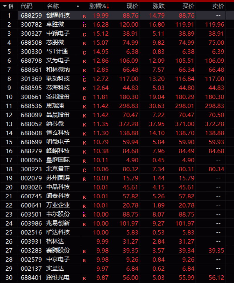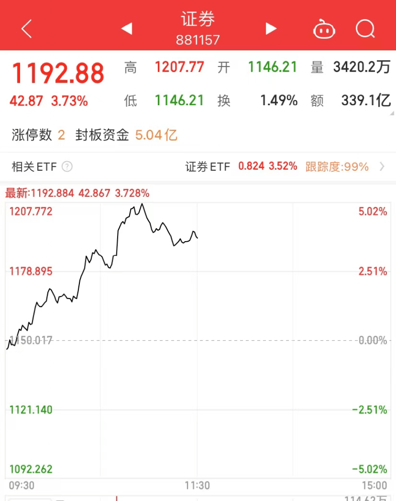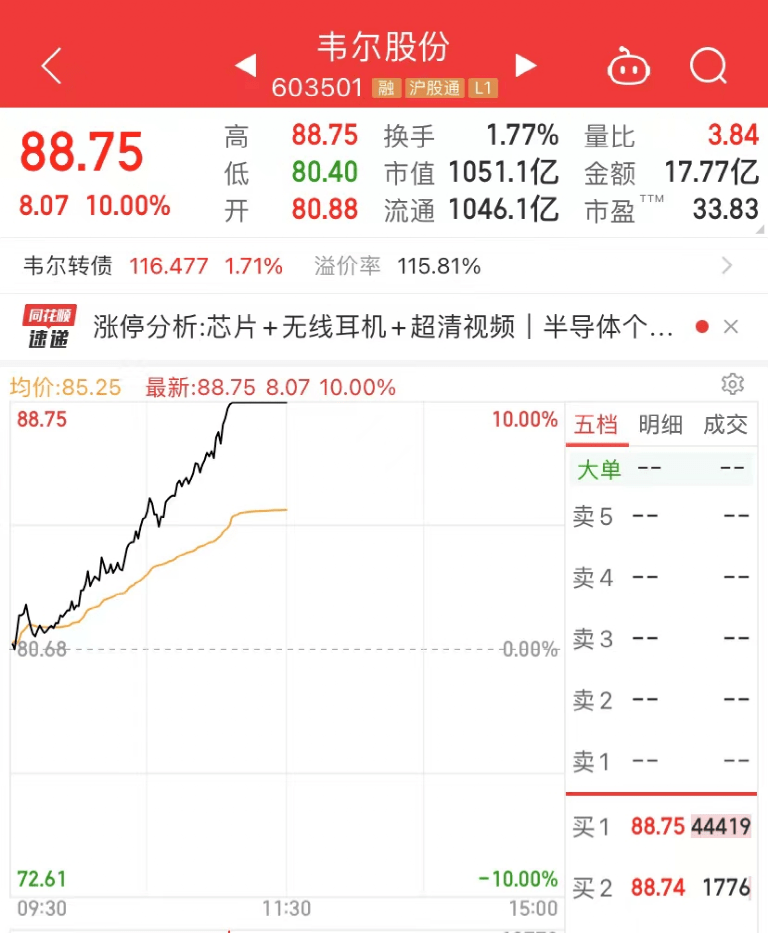 中国基金报 江右 股市又又又嗨了,牛市旗手都动起来了! 近期,A股持续躁动,今天上午“牛市旗手”券商股突然狂拉,财达证券、湘财股份更是涨停。有媒体报道以岭药业总部所在地石家庄部分药店连花清瘟胶囊出现断货情况,以岭药业今天上午又涨停。芯片股是今天最靓的仔,巴菲特出手抄底台积电,7万多亿市值大跌芯片板块狂掀涨停潮。 上午收盘,上证指数张1.27%,深证成指涨1.56%,创业板指数涨1.64%,科创50指数涨2.54%,成交额 ![]() 北上资金上午一路扫货,净买入58亿元。 ![]() 媒体报道石家庄出现“卖断货” 莲花清瘟胶股连续涨停 因为疫情防控政策的变化,石家庄市近期受到全国关注。近日,有媒体报道石家庄莲花清瘟胶囊出现卖断货的情况,总部位于石家庄、生产莲花清瘟胶囊的以岭药业今天上午又涨停,昨天已经涨停。上午收盘总市值631亿元。 ![]() 媒体报道,近日以岭药业总部所在地石家庄部分药店连花清瘟胶囊出现断货情况。财联社记者走访当地连锁药店,有工作人员表示“现在是有多少卖多少”,有药房甚至表示已经断货。 ![]() 牛市旗手躁动 两券商股涨停 市场近期明显回温,券商股也躁动起来。今天上午,券商股突然发飙,板块一度狂拉近5%。 ![]() 财达证券、湘财股份涨停,光大证券涨超9%,国联证券、广发证券等纷纷大涨。 巴菲特出手! 7万亿赛道掀起涨停潮 芯片股上午一路暴拉,板块涨幅超4%,半导体板块更是暴涨超6%。7万多亿市值的芯片板块掀起涨停潮,创耀科技20%涨停,卓胜微大涨16%,中颖电子、芯朋微等纷纷大涨,12只股涨停。 ![]() 千亿市值的韦尔股份也涨停。 ![]() 最新数据显示,巴菲特旗下的伯克希尔在三季度建仓买入台积电,持仓市值达41亿美元。此外,伯克希尔三季度还建仓建材制造商Louisiana-Pacific及杰弗瑞(JEF)。 而在近期,美国费城半导体指数已进入技术性牛市,相关美股半导体股票都筑底大涨;对于A股消费类半导体公司来说,2022年四季度开始是库存高位拐点。 编辑:舰长 版权声明 《中国基金报》对本平台所刊载的原创内容享有著作权,未经授权禁止转载,否则将追究法律责任。 |